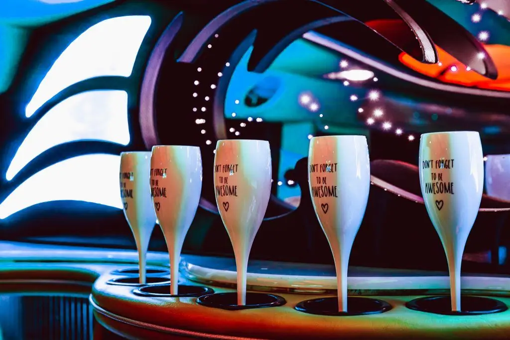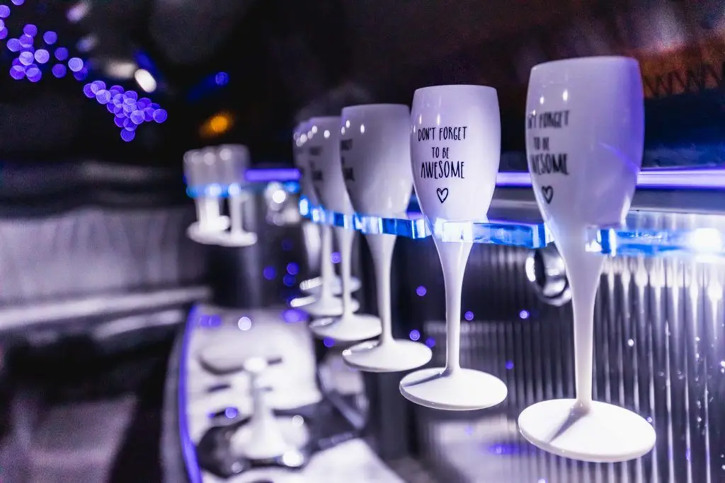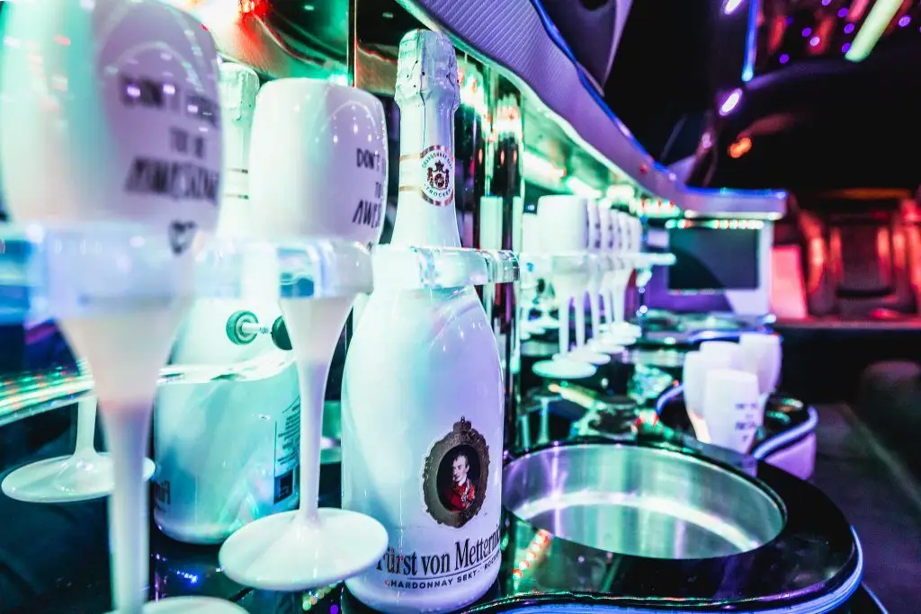 Alkoholische Getränke können im Fahrzeug genossen werden. Die meisten Reservierungen beinhalten eine kostenlose Flasche Sekt, und alkoholische und alkoholfreie Getränke können an den Limousinenbars bestellt werden. Das Mitbringen eigener Getränke ist jedoch nicht gestattet.